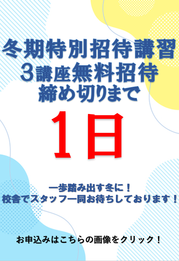 冬期特別招待講習 3講座申込〆切は明日!