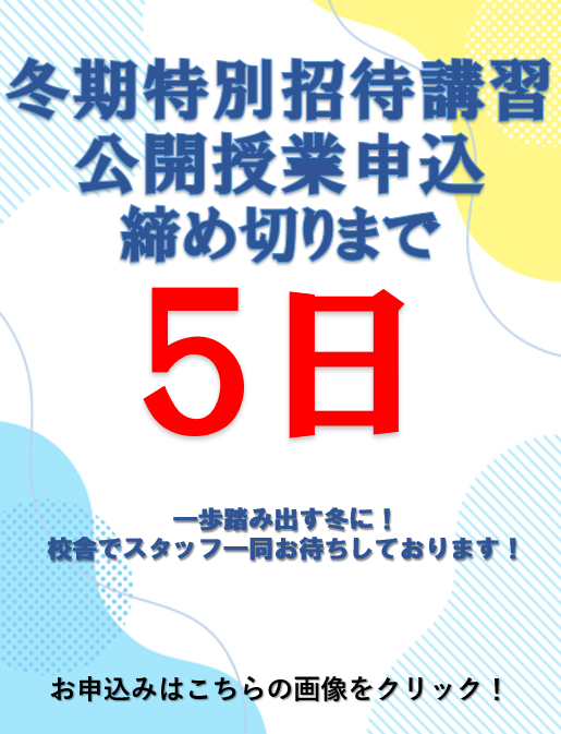2025年 12月 21日 冬期特別招待講習・公開授業〆切迫ってます!