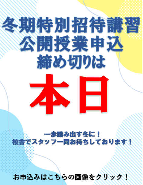 2025年 12月 26日 冬期特別招待講習・公開授業本日締め切りです!