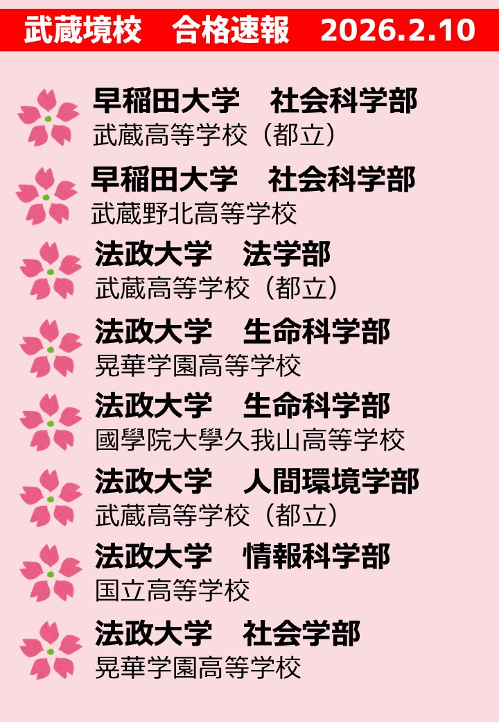 武蔵境校 合格速報2/6