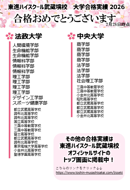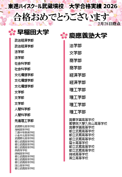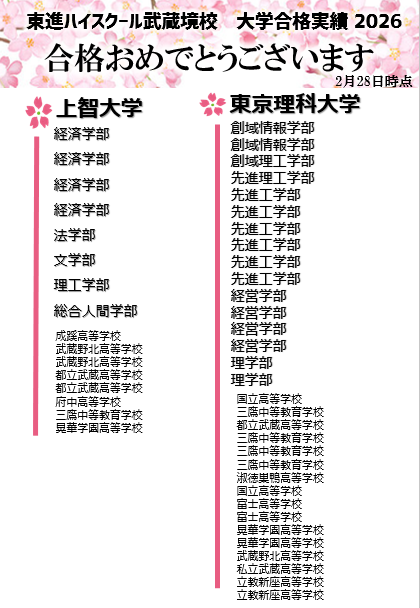2026年 3月 1日 ★武蔵境校 2026私大合格まとめ第一弾!
