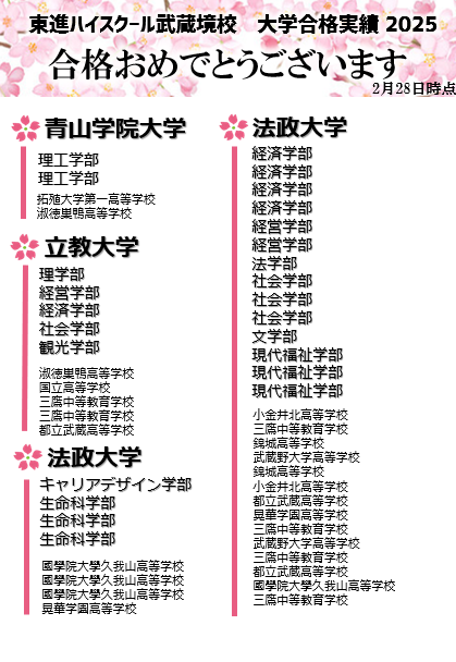 武蔵境校 合格速報 3/8