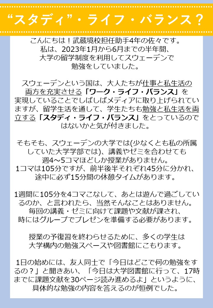2023年 8月 24日 “スタディ”・ライフ・バランス?