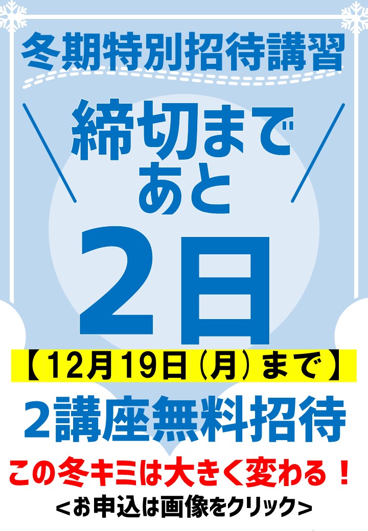 2022年 12月 17日 【冬期特別招待講習】\2講座 締め切りまであと2日/