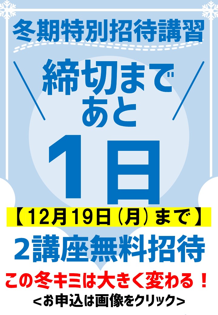 2022年 12月 18日 【冬期特別招待講習】\2講座 締め切りまであと1日/