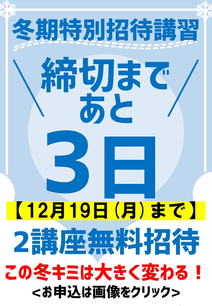 2022年 12月 16日 【冬期特別招待講習】\2講座 締め切りまであと3日/
