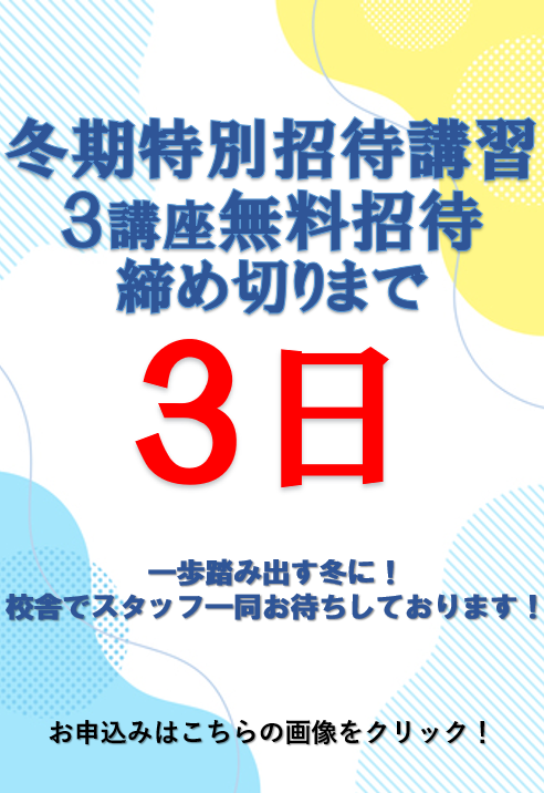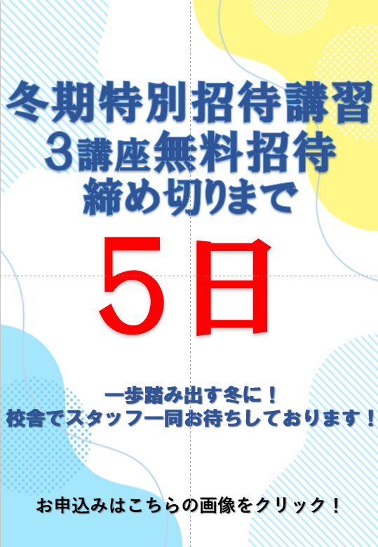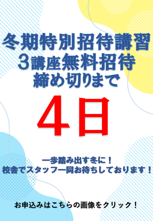 2025年 12月 8日 冬期特別招待講習 3講座申込〆切まであと4日